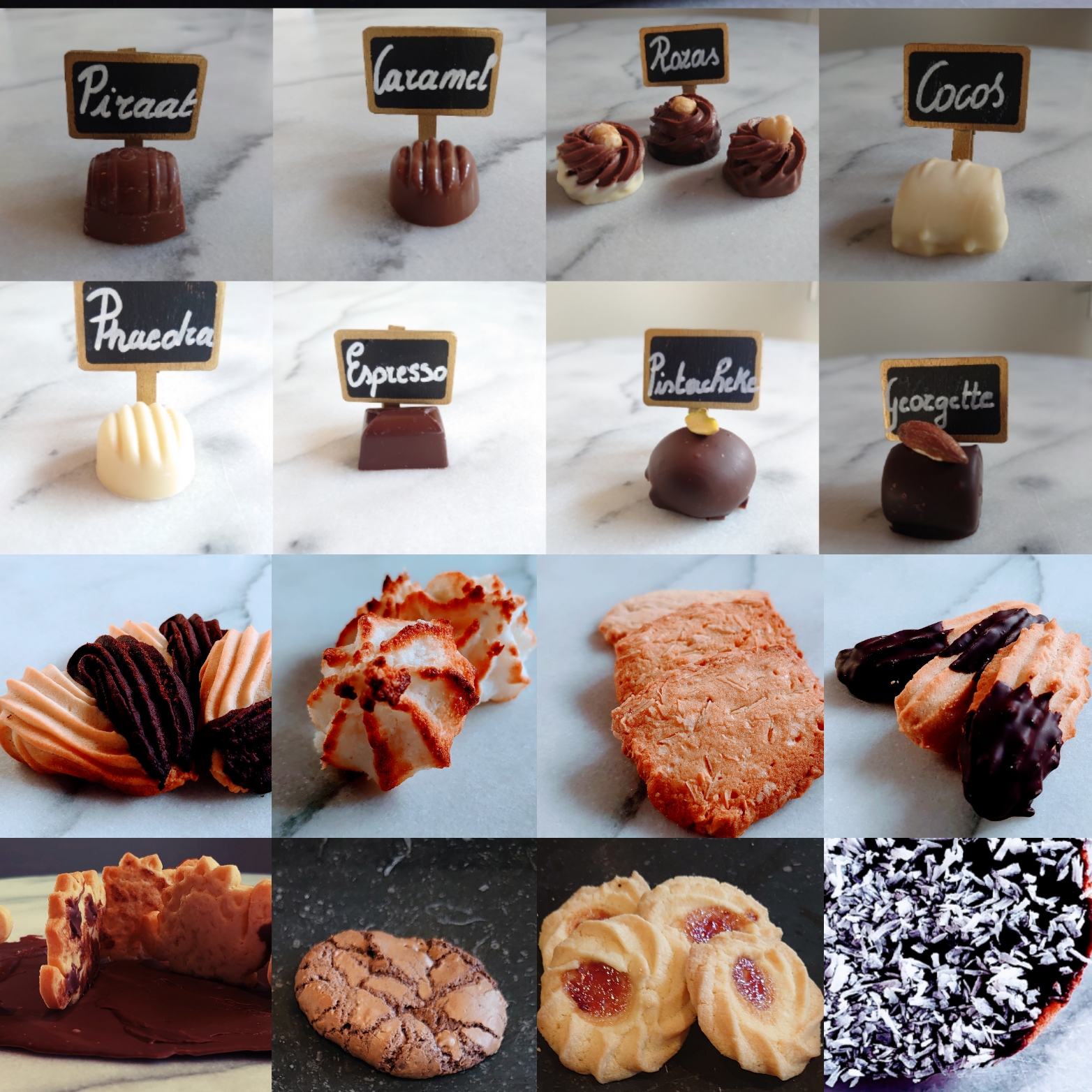 Passionate about taste, buy local whenever possible and use ingredients according to the seasons. She loves to make classic chocolates, cookies,... but loves even more to let her fantasy and childlike enthousiasm take over to create fun, surprising showpieces.